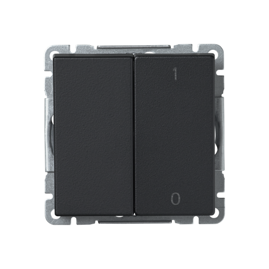 2-pole 2-gang 1-way switch, Impressivo, no X-terminals, black matt