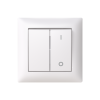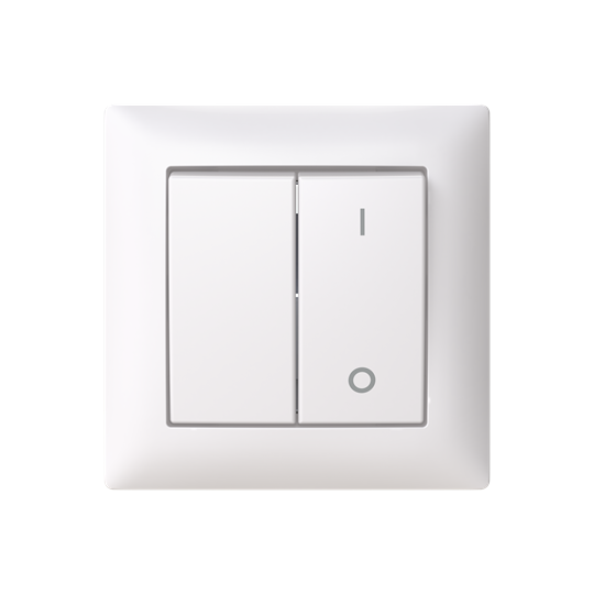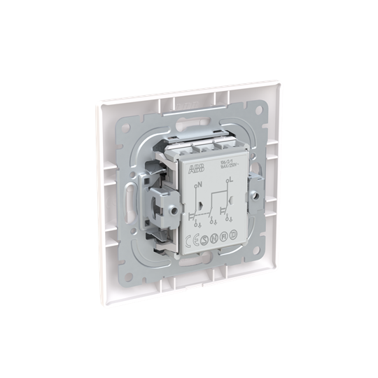 Switch with screwless terminals. The terminals are for max 2 rigid wires. Including cover frame, switch insert and rocker. Bio-circular plastics used in the frame.