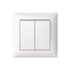 Switch with screwless terminals. The terminals are for max 2 rigid wires. Including cover frame, switch insert and rocker. Bio-circular plastics used in the frame.
