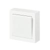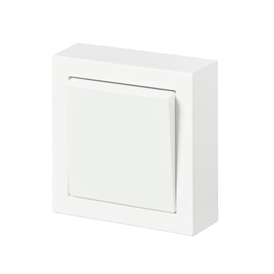 Surface mounting switch with screwless terminals. The terminals are for max 2 solid or rigid wires. Including switch insert, rocker, surface mounting frame and bottom.