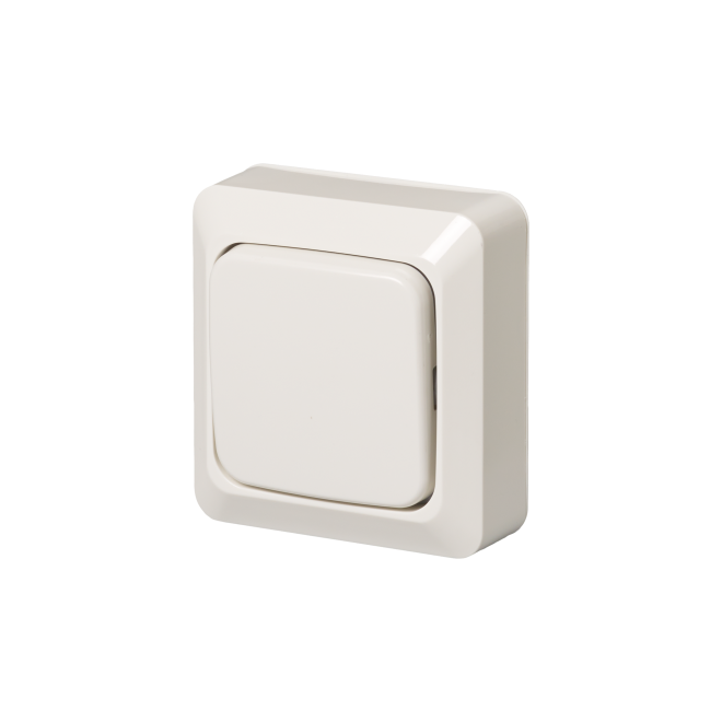 Surface mounting switch with screwless terminals and rocker with clip-on fastening. The terminals are for max 2 rigid wires. X-terminals are for extending the wires.