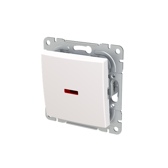 Switch with screwless terminals and rocker with clip-on fastening. The terminals are for max 2 rigid wires. Red signal lamp included