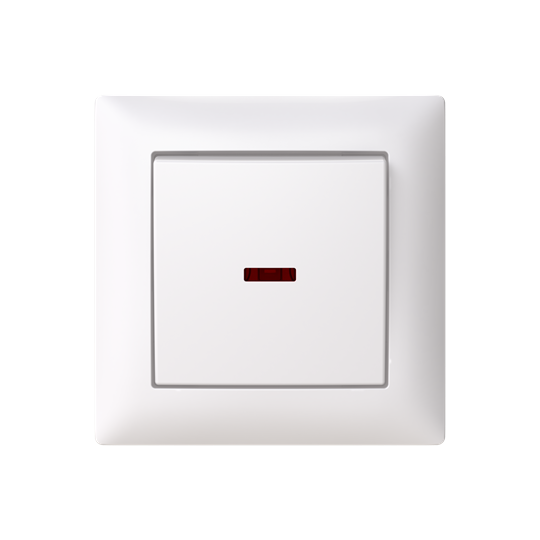 Switch with screwless terminals and rocker with clip-on fastening. The terminals are for max 2 rigid wires. Cover frame and red signal lamp included. Bio-circular plastics used in the frame.