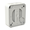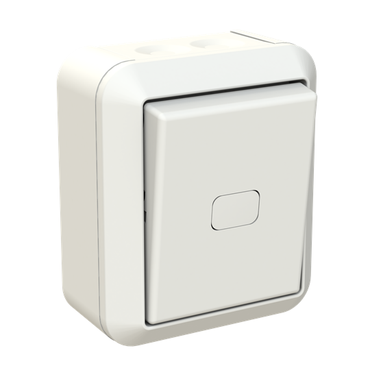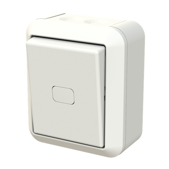 Surface mounting switch with screwless terminals. The terminals are for max 2 rigid wires. X-terminals are for extending the wires. Delivered with white and clear lens but without lamp.