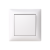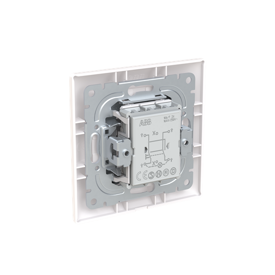 Switch with screwless terminals and 2 X-terminals. The terminals are for max 2 rigid wires. Including cover frame, switch insert and rocker. Bio-circular plastics used in the frame.