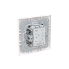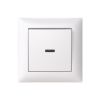 Push switch with screwless terminals. The terminals are for max 2 rigid wires. Including cover frame, transparent lens, switch insert and rocker. Bio-circular plastics used in the frame.
