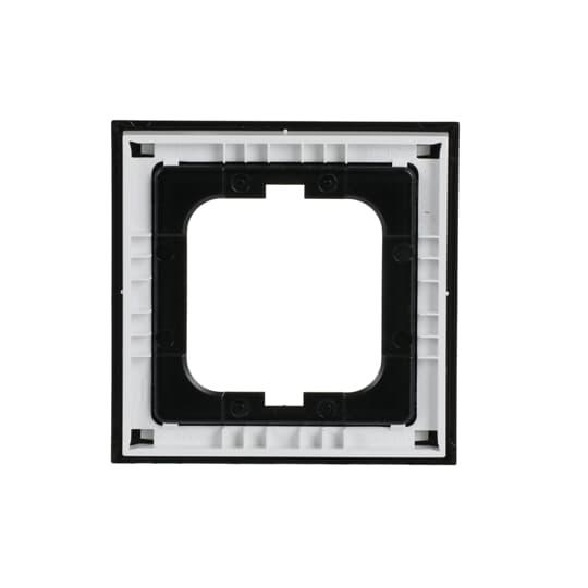Flush mounting cover frame for 1-gang accessories, such as switches. Plastic material. Cleaning with a mild, standard household detergent. The use of strong dissolvents should be avoided.