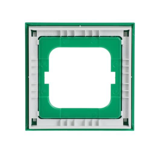 Flush mounting cover frame for 1-gang accessories, such as switches. Plastic material. Cleaning with a mild, standard household detergent. The use of strong dissolvents should be avoided.