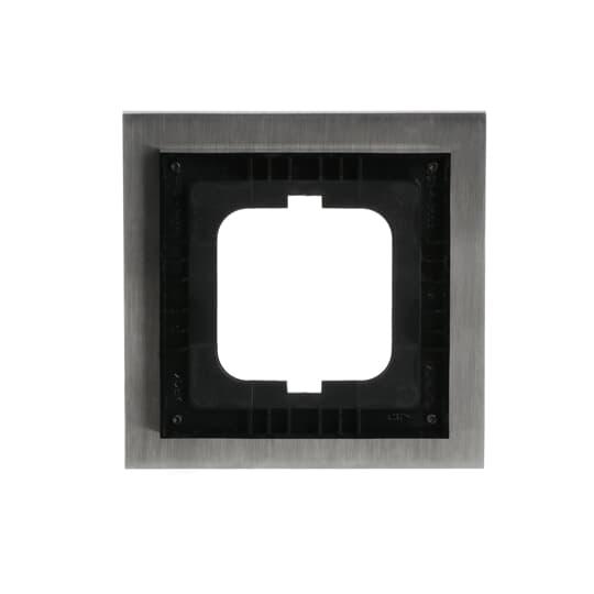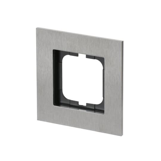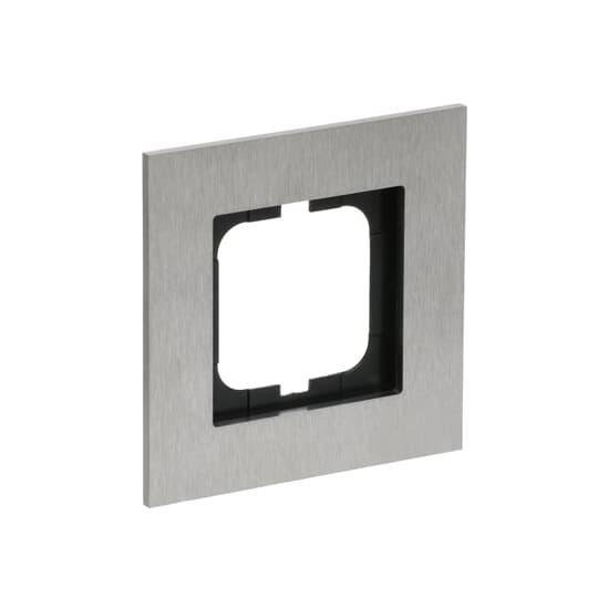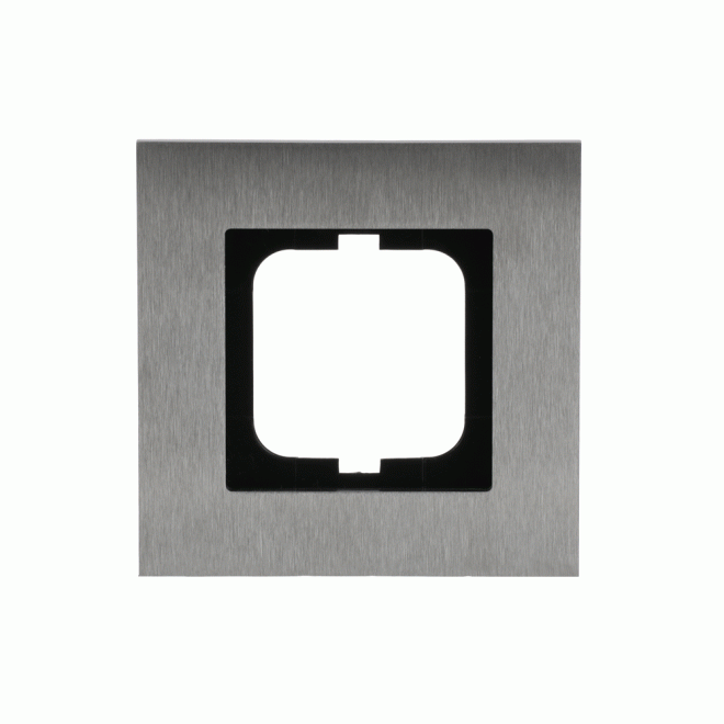 Flush mounting cover frame for 1-gang cover plated accessories, such as switches. Material stainless steel. Cleaning with a mild, standard household detergent. The use of strong dissolvents should be avoided.