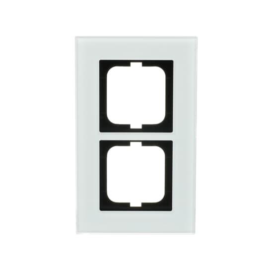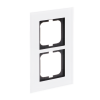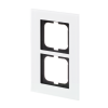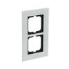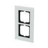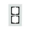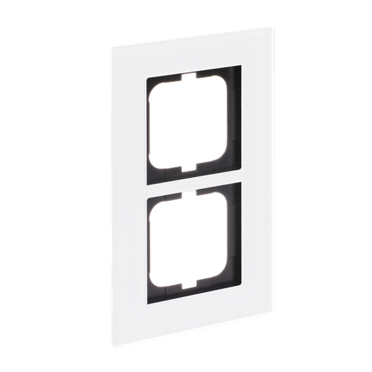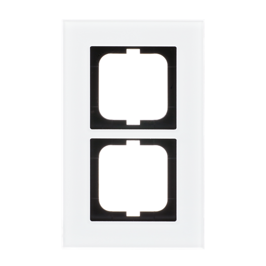 Flush mounting cover frame for 1-gang cover plated accessories, such as switches. Material glass. Cleaning with a mild, standard household detergent. The use of strong dissolvents should be avoided.