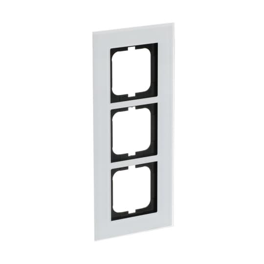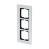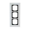 Flush mounting cover frame for 1-gang cover plated accessories, such as switches. Material glass. Cleaning with a mild, standard household detergent. The use of strong dissolvents should be avoided.
