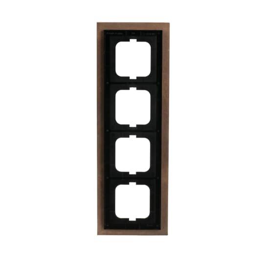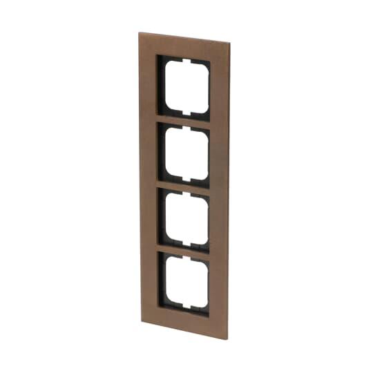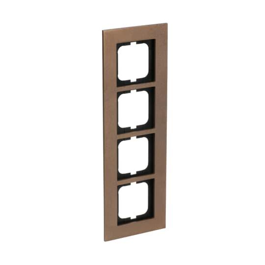 Flush mounting cover frame for 1-gang cover plated accessories, such as switches. Suitable for both horizontal and vertical installation. Material bronze casting. Cleaning with a mild, standard neutral household detergent. The patinated surface can be polished with a silver polish, in which case the typical color of bronze is altered temporarily. The use of strong dissolvents should be avoided.