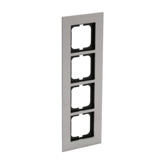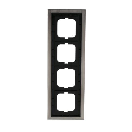 Flush mounting cover frame for 1-gang cover plated accessories, such as switches. Suitable for both horizontal and vertical installation. Material stainless steel. Cleaning with a mild, standard household detergent. The use of strong dissolvents should be avoided.