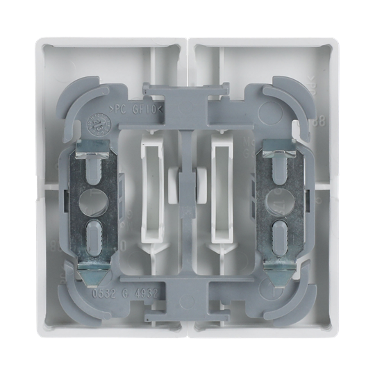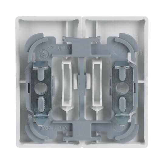 2-gang rocker for 2-rocker switch inserts. Can be installed in dry indoor spaces. The surface is painted. Cleaning with a mild, standard household detergent. Be careful when cleaning with a powerful dissolvent.