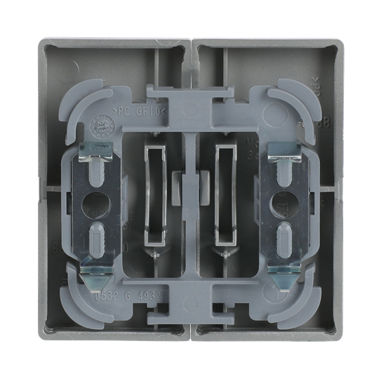 2-gang rocker for 2-rocker switch inserts (not for 10621.xx). Can be installed in dry indoor spaces. When flush mounted into humid spaces or outdoors a seal kit and screw fastening of the rocker frame must be used. Manufactured from a durable high quality plastic material. The surface is glossy and easy to keep clean. Cleaning with a mild, standard household detergent. Be careful when cleaning with a powerful dissolvent.
