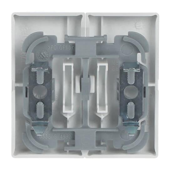 2-gang rocker for 2-rocker switch inserts (not for 10621.xx). Can be installed in dry indoor spaces. When flush mounted into humid spaces or outdoors a seal kit and screw fastening of the rocker frame must be used. Manufactured from a durable high quality plastic material. The surface is glossy and easy to keep clean. Cleaning with a mild, standard household detergent. Be careful when cleaning with a powerful dissolvent.
