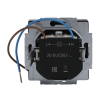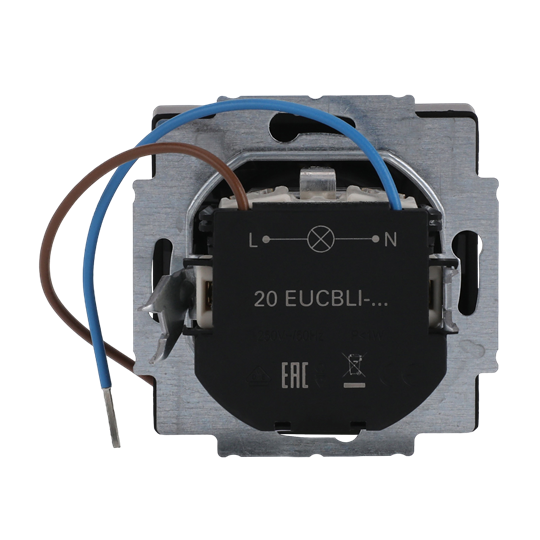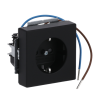 There are terminals for each contact of the socket outlet. The terminals are for max 2 solid or rigid wires. No X-terminals. A white color LED light (230V/2,5mA/0,6VA) is integrated into the socket outlet. The light can be controlled seperately or it can be connected to the socket terminals.