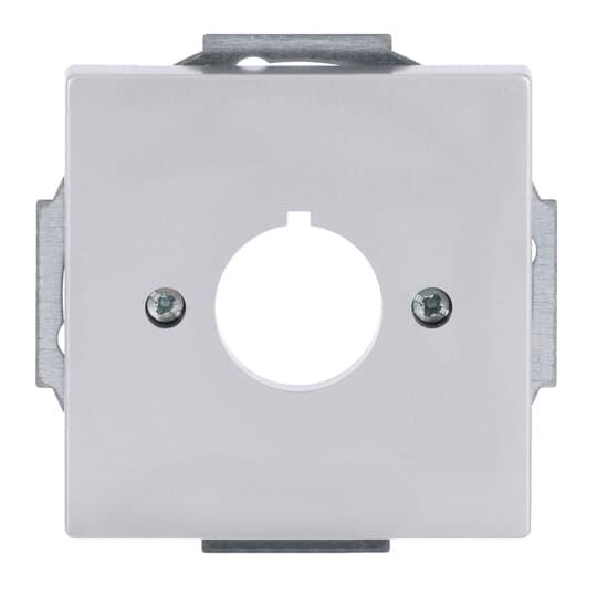 Center plate with a round 22,5mm dented opening that prevents rotation. Used for fastening different devices. It is suitable for the 85mm cover frames and with the 2519-xx adapter also for the 100mm cover frames. The manufacture material is a durable high quality plastic. The surface is glossy and easy to keep clean. Cleaning with a mild, standard household detergent. Be careful when cleaning with a powerful dissolvent.
