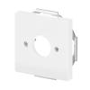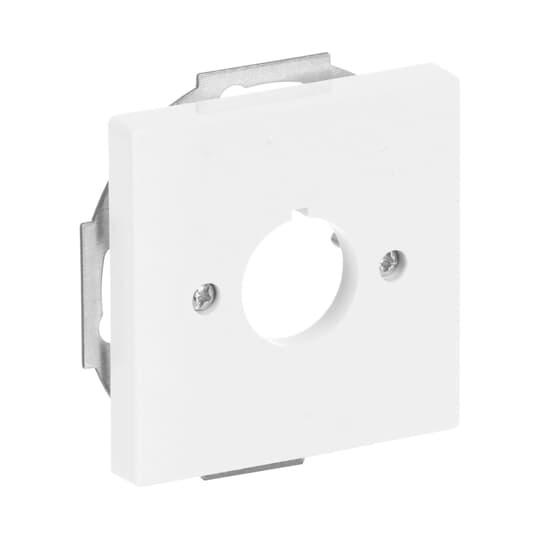 Center plate with a round 22,5mm dented opening that prevents rotation. Used for fastening different devices. It is suitable for the 85mm cover frames and with the 2519-xx adapter also for the 100mm cover frames. The manufacture material is a durable high quality plastic. The surface is glossy and easy to keep clean. Cleaning with a mild, standard household detergent. Be careful when cleaning with a powerful dissolvent.