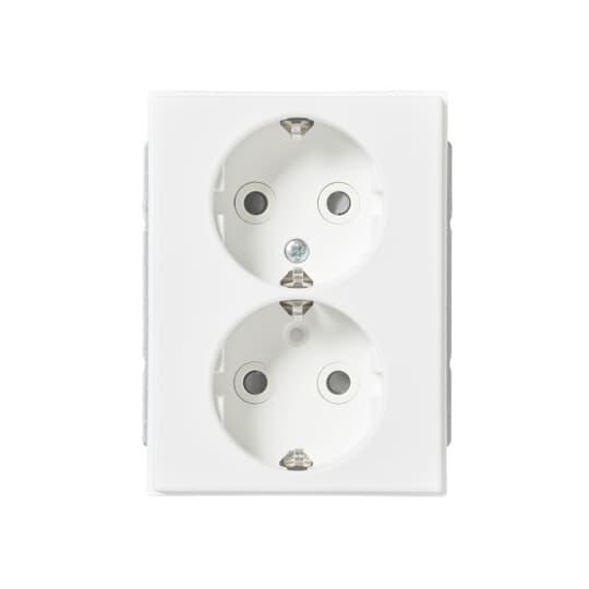 Schuko socket outlet, Impressivo, 2-gang, shuttered, screwless terminals, branching terminals, white matt