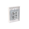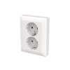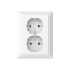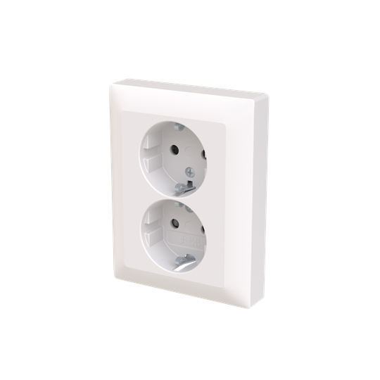 Multipack for 2-gang socket outlet with terminals for each contact of the socket outlet for max 4 rigid wires. No X-terminals. The socket outlet insert without the cover plate is screen-protected. Bio-circular plastics used in the centre plate.