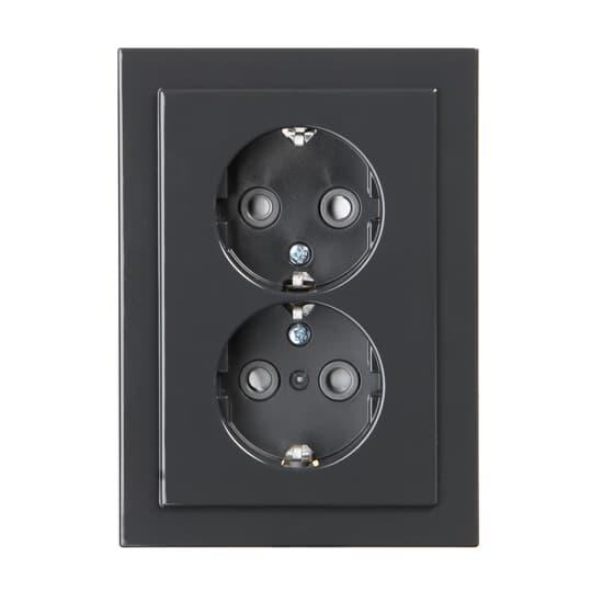 Socket outlet, Schuko, 2-gang, shuttered, screwless terminals, branching terminals, flat, anthracite