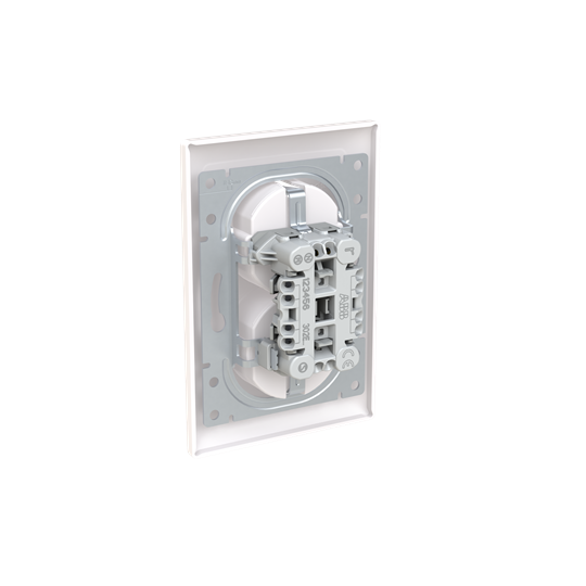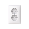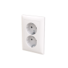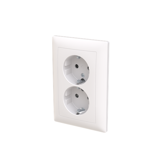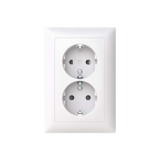 Low version of socket outlet. There are terminals for each contact of the socket outlet for max 4 rigid wires. No X-terminals. The socket outlet insert without the cover plate is screen-protected. Bio-circular plastics used in the centre plate.