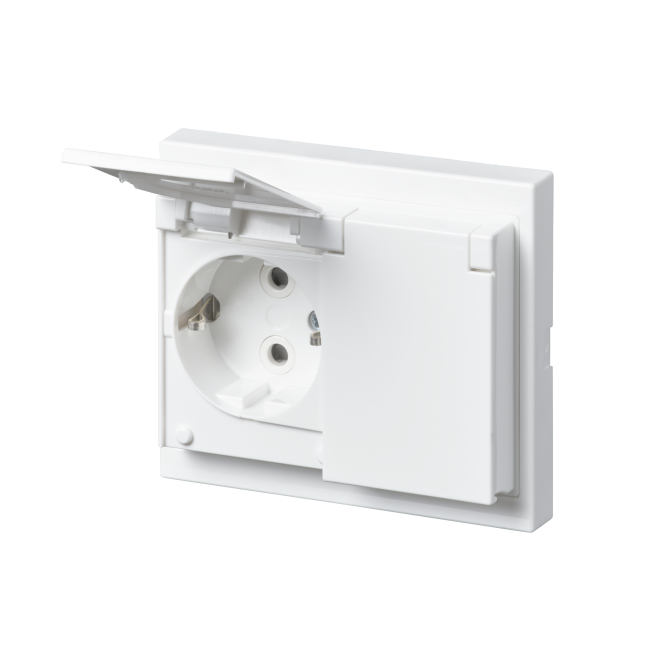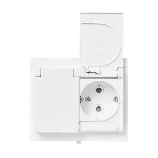 There are terminals for each contact of the socket outlet for max 4 rigid wires. No X-terminals. The socket outlet insert without the cover plate is screen-protected.