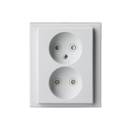 Socket outlet, Impressivo, not earthed, 2-gang, shuttered, screwless terminals, branching terminals, white