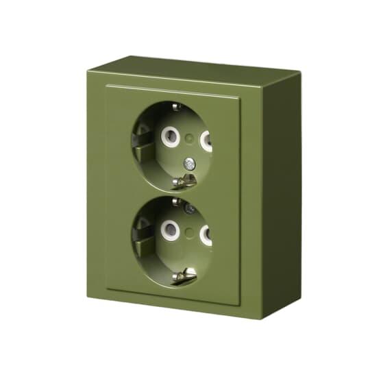 Socket outlet, Impressivo, Schuko, 2-gang, shuttered, screwless terminals, green