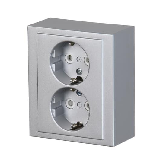 Socket outlet, Impressivo, Schuko, 2-gang, shuttered, screwless terminals, aluminum