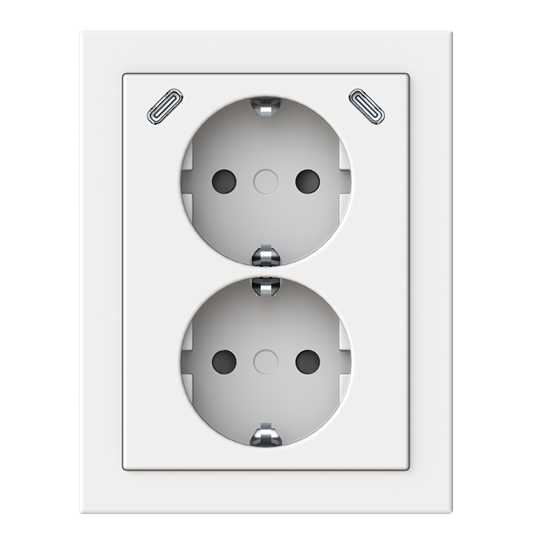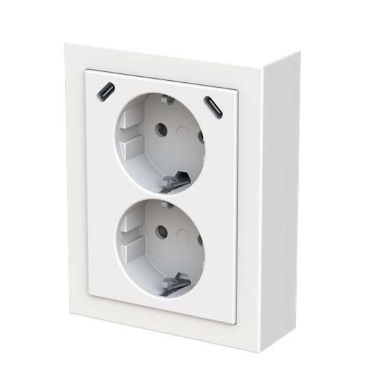 Double socket outlet with 2 USB C. With screwless terminals. For connecting electric loads.