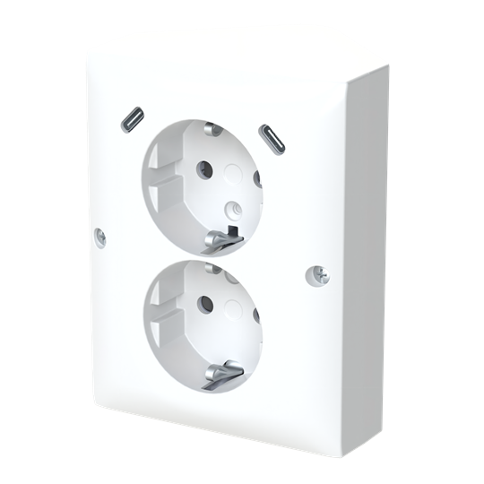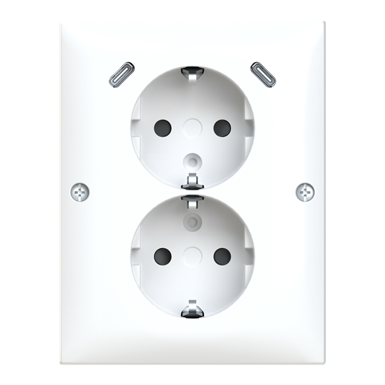 Double socket outlet with 2 USB C. With screwless terminals. For connecting electric loads.