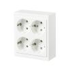 There is 2 times 2-gang socket outlet inserts in one unit. The socket outlet inserts are internally connected. In one socket outlet insert there are terminals for each contact of the socket outlet for max 4 rigid wires. No X-terminals.