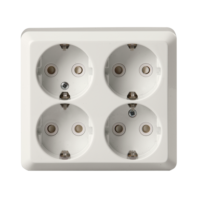 There is 2 times 2-gang socket outlet inserts in one unit. The socket outlet inserts are internally connected. In one socket outlet insert there are terminals for each contact of the socket outlet for max 4 rigid wires. No X-terminals.