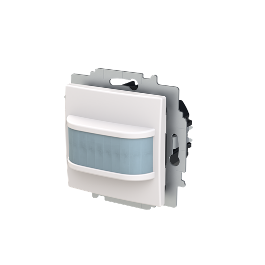 Movement detector sensor with measurement of ambient light. For automatic switching of devices dependent on motion and brightness. ./. Compatible with all free@home flex inserts. Adjusting elements on rear side. Extension of the detection range by means of master/slave combination. With brightness-independent test mode for evaluating the detection zone. With detection display in test mode. Surveillance density: 14 sectors with 56 switching segments. Switch-off delay: approx. 10 sec - 30 min or short-time pulse 1 sec adjustable.