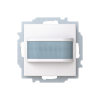 Movement detector sensor with measurement of ambient light. For automatic switching of devices dependent on motion and brightness. Push switch function possible at all times. ./. In combination with dimmer insert flex: dimming function of lighting and selectable light value storage. With enabling of pre-warning of switch-off for stairwell operation. Compatible with all free@home flex inserts. Adjusting elements on rear side. Extension of the detection range by means of master/slave combination. With continuous light/continuous Off function. With brightness-independent test mode for evaluating the detection zone. With detection display in test mode. Surveillance density: 14 sectors with 56 switching segments. Switch-off delay: approx. 10 sec - 30 min or short-time pulse 1 sec adjustable.