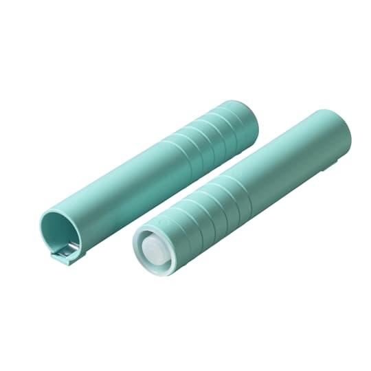 A plug is supplied with each conduit end piece. Conduit end piece AJ5.25 is primarily used for termination of plastic conduits in concrete casting. After casting, the conduit end piece is cut to the desired length at one of the cut-off grooves, and the trunking is continued with a conduit of the same size. The plug protects the conduit from dirt, concrete and foreign particles. Made of halogen free material (IEC/61249-2-21).
