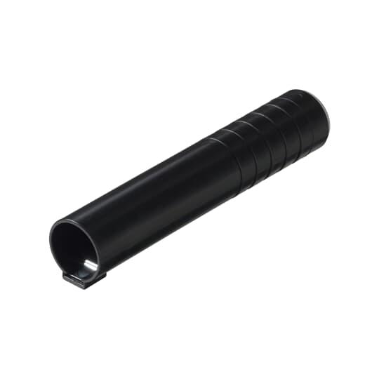 A plug is supplied with each conduit end piece. Conduit end piece AJ5.25 is primarily used for termination of plastic conduits in concrete casting. Black color is used as a color coding, indicating that the conduit is connected to a electric box at back surface of the element. After casting, the conduit end piece is cut to the desired length at one of the cut-off grooves, and the trunking is continued with a conduit of the same size. The plug protects the conduit from dirt, concrete and foreign particles. Made of halogen free material (IEC/61249-2-21).