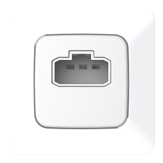 DCL socket for mounting in a standard wall box. The socket has double 2.5 mm² plug-in terminals which ensure a fast and secure connection. DCL plug AKL9 / 1514305 purchased separately.