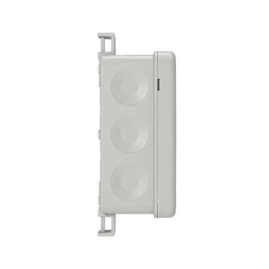 Junction box AP45 (2,5 mm², 500 V) is equipped with 8 self-sealing membrane cable entries for cables up to Ø 17 mm and 4 for cables up to Ø 10 mm. The membranes enable easy cable installation by simply inserting the stripped ends through the inlets. The junction box has IP65 protection rating (also after installing the cables). Cover locks by snapping and can be opened by inserting a screwdriver (for example) into the opening slots - no screws are needed. The junction box size is 105x43x40 and it has external fastening points on both sides. The box can be furnished with strain-relief AS9.10. Mounting temperature -25...+60 °C. Made of halogen free material (IEC/61249-2-21). Hard plastic parts are manufactured from recycled plastic. Color grey (RAL 7035).