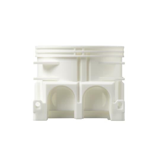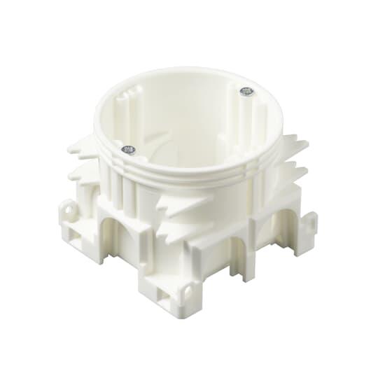 Box has integrated gypsum board supports and six knock out inlets on sides and three in the bottom. Wide range of accessories available such as different sizes of pipe inlets and extension rings.