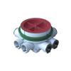 The ceiling junction box has two screw pillars for M4 screws, e.g. for attaching lamp connectors or roof lids and screw distance is c/c 70 mm. The green adapter ring, delivered with the box, is used when board thickness is 12-13 mm. The ring is removed when the board thickness is 24-26 mm e.g. double plaster board. There are 8 fixed inlets for 20 mm conduits, and 6 have an adapter for 16 mm conduit. All inlets are equipped with a locking device in metal for reliable connection between the conduits (flexi or stiff pipe) and the box. In addition, there are two knock outs in the bottom for different inlets. Manufactured from halogen free material (IEC/61249-2-21), the box complies with the IEC/EN60670:2005 glow wire test (850 °C).