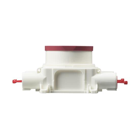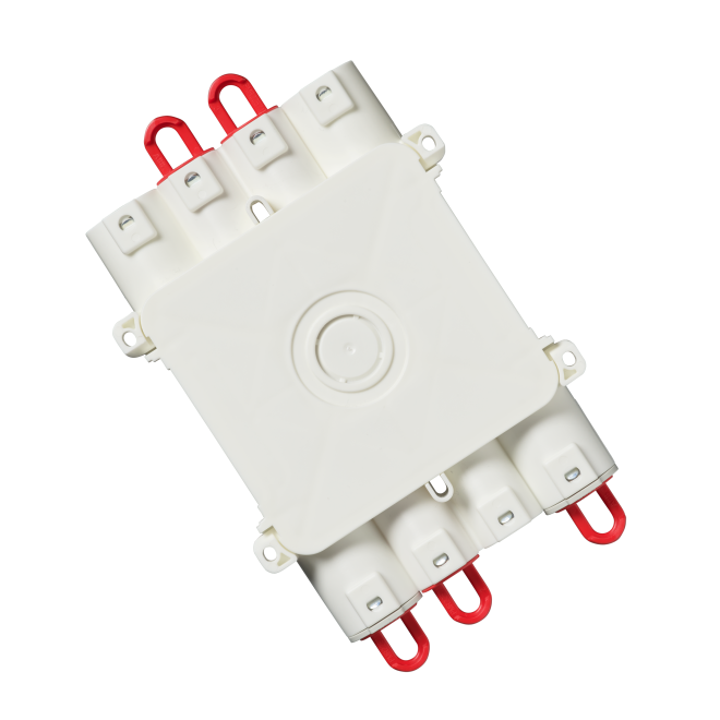 Junction box AUB67 is especially designed for off site and on site casting applications. Box height is 80 mm. Box has several fixed inlets with locking springs to two directions (4 x 20 mm and 4 x 25 mm). Two 25 mm inlets have removable 20 mm reducer. It is possible to connect four 20 mm conduits simultaneously to one direction. The mounting box includes a rotating installation ring, has large inside space and removable back cover. Made of halogen free material (IEC/61249-2-21) and fulfills the requirements of the glow wire test according to the standard IEC/EN60670: 2005 (650 °C). Maximum number of conductors is 40 pcs.