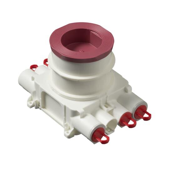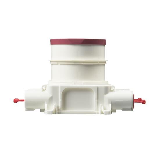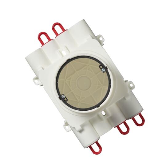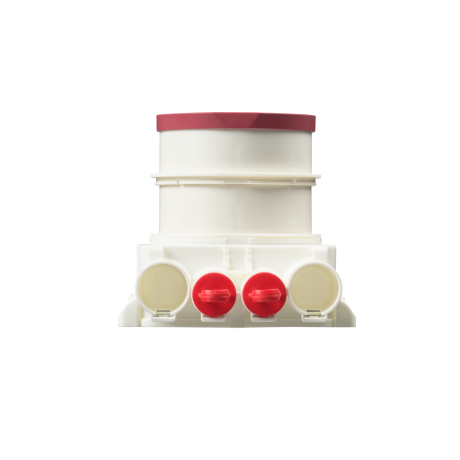 Junction box AUB67H is especially designed for off site and on site casting applications. Box height is 112 mm. Box has several fixed inlets with locking springs to two directions (4 x 20 mm and 4 x 25 mm). Two 25 mm inlets have removable 20 mm reducer. It is possible to connect four 20 mm conduits simultaneously to one direction. The mounting box includes a rotating installation ring, has large inside space and removable back cover. Made of halogen free material (IEC/61249-2-21) and fulfills the requirements of the glow wire test according to the standard IEC/EN60670: 2005 (650 °C). Maximum number of conductors is 40 pcs.