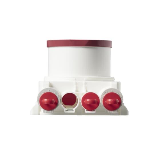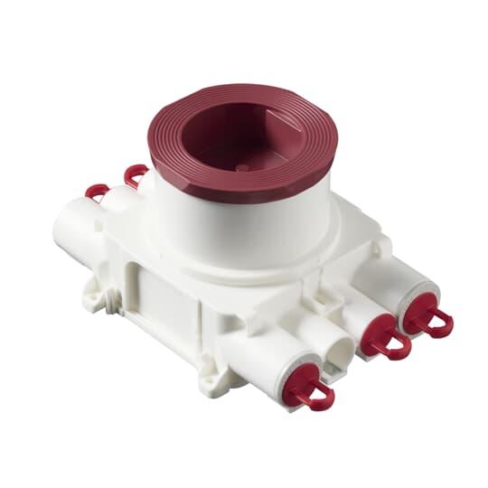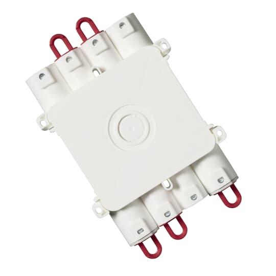 Junction box AUB67M is especially designed for off site and on site casting applications. Box height is 96 mm. Box has several fixed inlets with locking springs to two directions (4 x 20 mm and 4 x 20/25 mm). The mounting box includes a rotating installation ring, has large inside space and removable back cover. Made of halogen free material (IEC/61249-2-21).