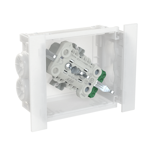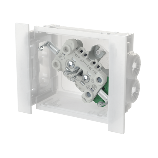 Socket outlet with terminals for each contact of the socket outlet for max 4 rigid wires. The socket outlet insert without the cover plate is screen-protected.