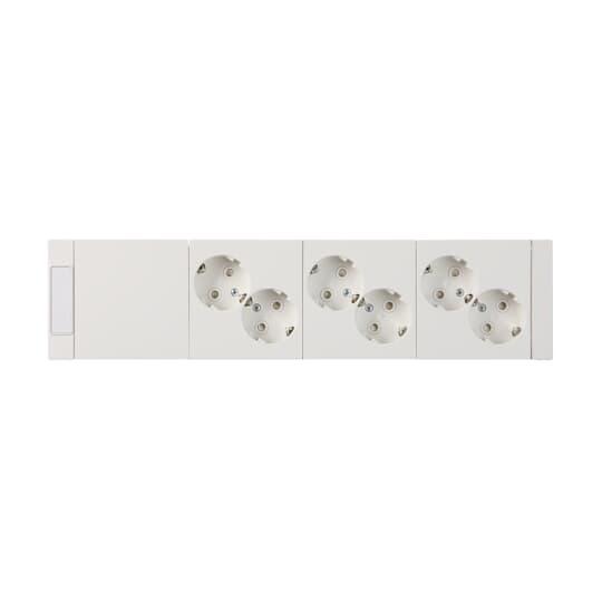 Ready-to-install 2-gang socket outlet that contains an end package, covers, a junction box with strain-reliefs and a 3 connectors. Approved for 3-phase linking.