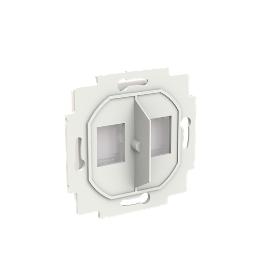 Tele outlet for two Keystone RJ45 connectors. The connectors are not included. Bio-circular plastics used in the centre plate.
