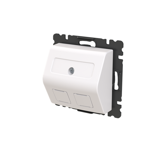 RJ45 outlet , 85 mm, for Keystone, Actassi, and AMP connectors. Multi-pack. Bio-circular plastics used in the centre plate.